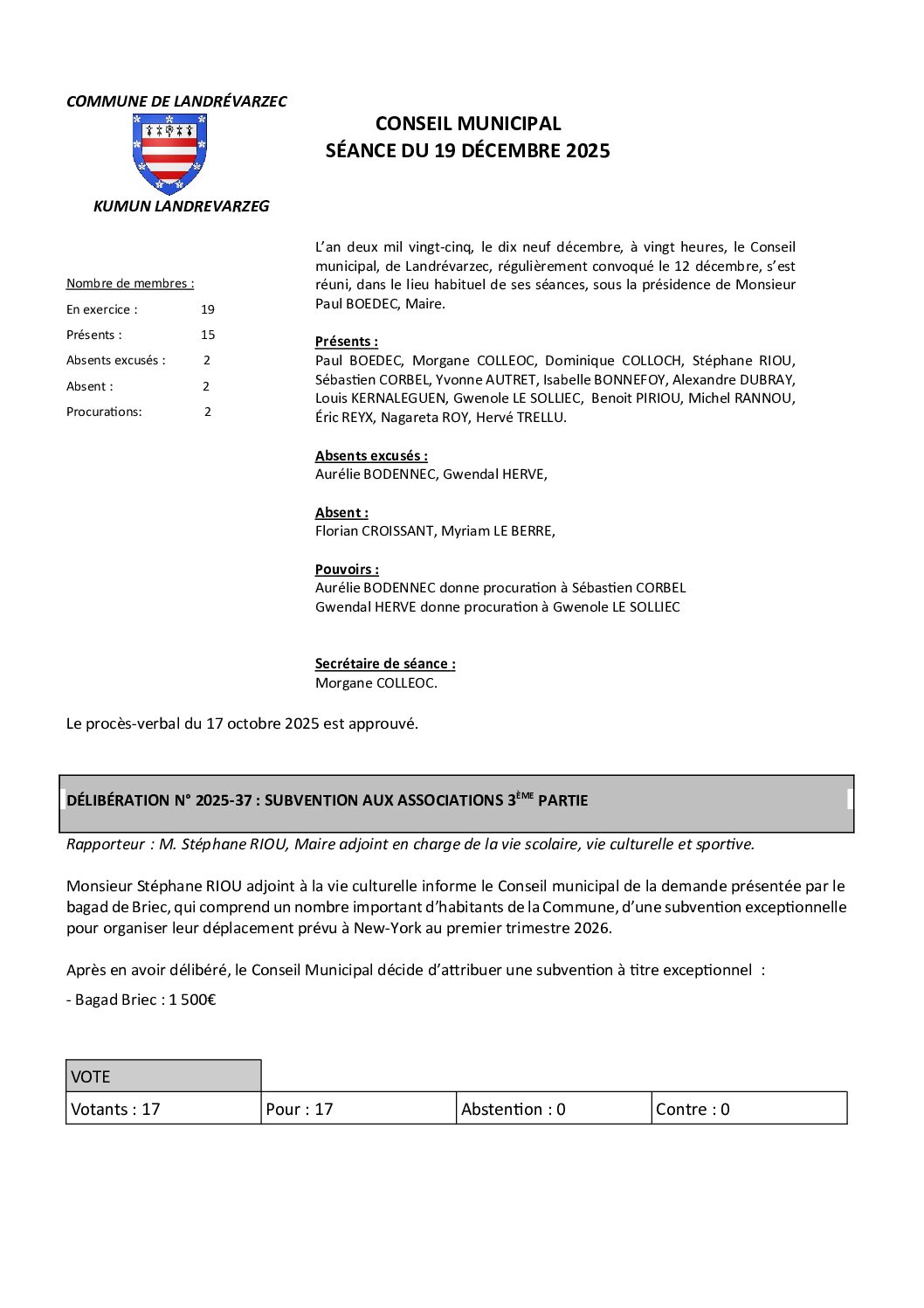 • Conseil municipal